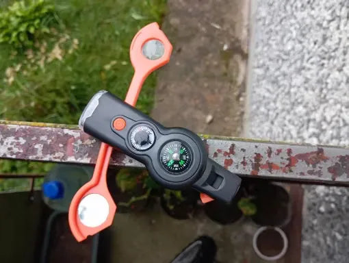 Ne laissez pas les situations inattendues vous prendre au dépourvu. Ce multi-outil robuste 7-en-1 est conçu pour la durabilité et la fiabilité. Du camping et de la randonnée au kayak et plus encore, ses fonctionnalités incluent un sifflet d'urgence, une boussole et un compartiment de rangement. Facile à transporter avec son cordon et sa forme compacte, c'est votre allié pour assurer la sécurité lors de l'exploration.